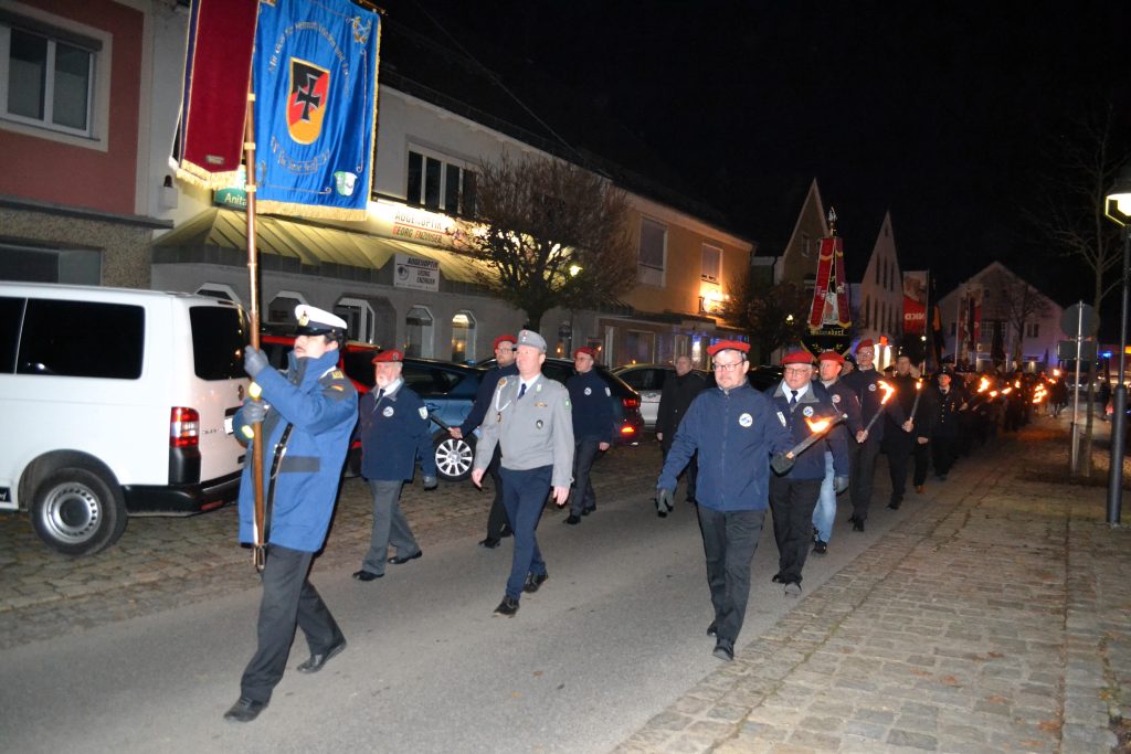 Anschließend formierte sich ein Fackelzug über die Füeßlgasse, den Marktplatz zum Kriegerdenkmal. Die Reservistenkameradschaft stellte einen Ehrenzug.